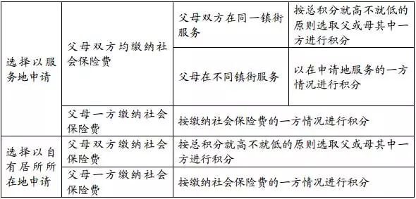 第六條本方案第七條第七項(xiàng)第3點(diǎn)和第八項(xiàng)積分項(xiàng)目為申請(qǐng)人積分,其余積分項(xiàng)目基本為申請(qǐng)人父或母積分。父母雙方不累計(jì)積分,積分方式如下: